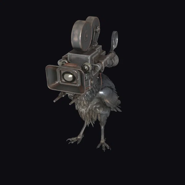 In a pose that exudes creative fervor, the steampunk crow filmmaker stands tall, its slender legs splayed wide as if ready to spring into action. The crow’s body is a marvel of metallic feathers, with a mesmerizing texture that suggests a mix of machine and avian. A vintage camera, complete with brass body, film reels, and a lens that shines like a miniature moon, is cradled in the crow’s beak. The camera’s details are meticulously rendered, from the bolts and rivets to the delicate mechanisms that seem to pulse with a life of their own. As a 3D model, this crow filmmaker is poised to bring a touch of steampunk whimsy to games, animations, or VR experiences, inviting users to imagine the stories it might tell through its lens.