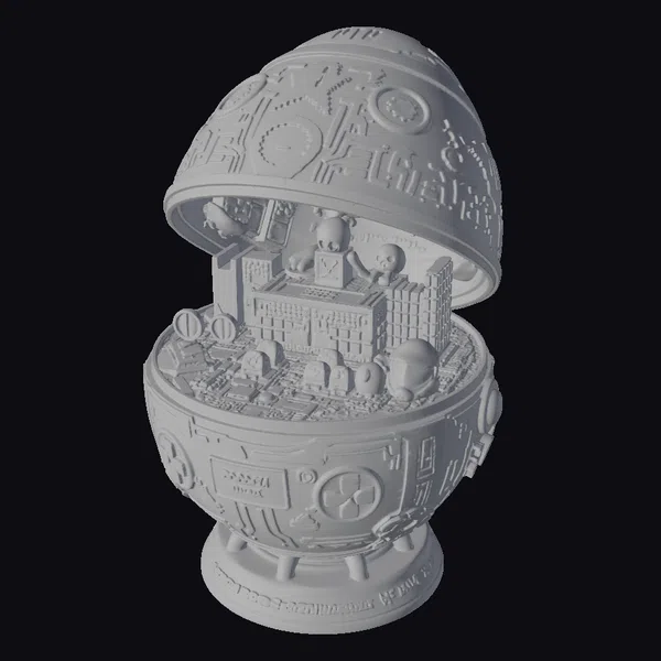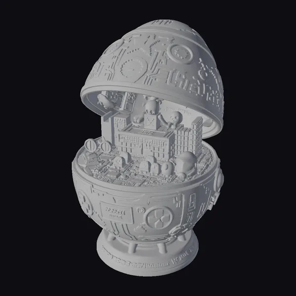 Floating dynamically on a pedestal, the Steampunk Gaming Easter Egg presents itself as a marvel of miniature engineering. The egg’s dome opens to expose an inner world that is teeming with gaming nostalgia – tiny joysticks, vibrant gaming balls, and a complex blue circuit board that serves as the base. The exterior of the egg is a testament to steampunk design, with its intricate engravings of gears, cogs, and other industrial elements. The combination of copper and gold hues gives the egg a luxurious feel, making it a standout piece for any collector or enthusiast. This model is perfect for use in games, 3D printing projects, VR/AR experiences, animations, or as a design reference. Its detailed design and unique blend of steampunk and gaming elements make it an unparalleled asset.