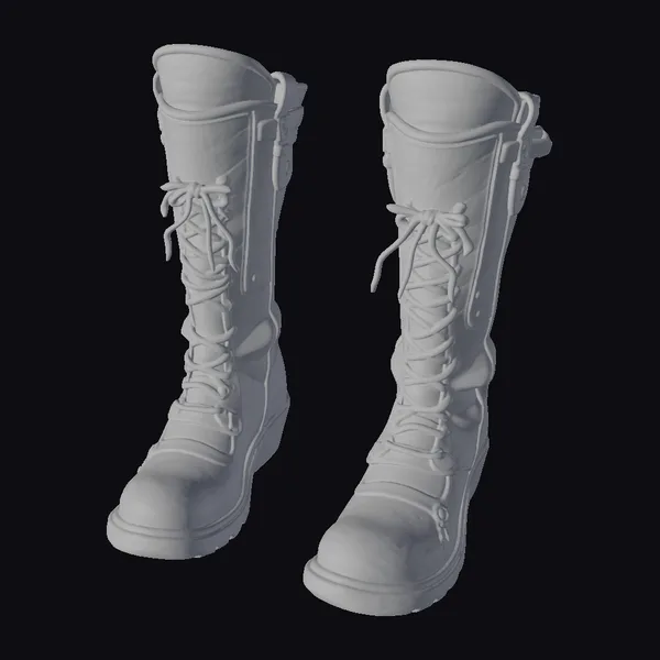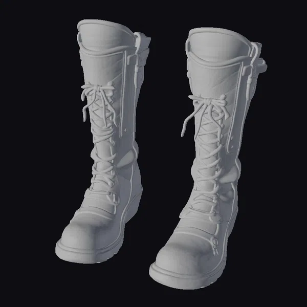 Detailed with precision, these steampunk-inspired combat boots feature a vibrant yellow hue with distressed black accents, giving them a battle-worn appearance. The laces are intricately designed to resemble industrial machinery, adding to the steampunk aesthetic. The boots’ rugged texture and worn look evoke a sense of adventure and resilience. Perfect for use in games, 3D printing, VR/AR experiences, animation, and design projects, these boots are sure to add a unique touch to any creative endeavor.