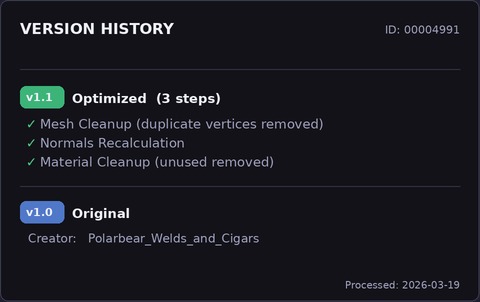 Further optimized in this latest version 1.1, this Very High Poly Premium 3D model is available immediately in GLB and STL file formats and can be purchased with licenses for both personal and commercial use.