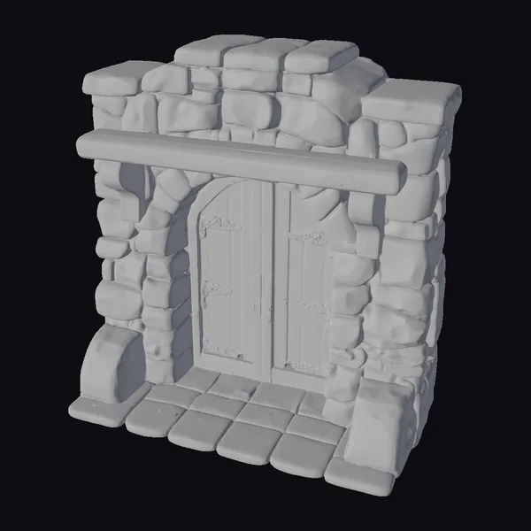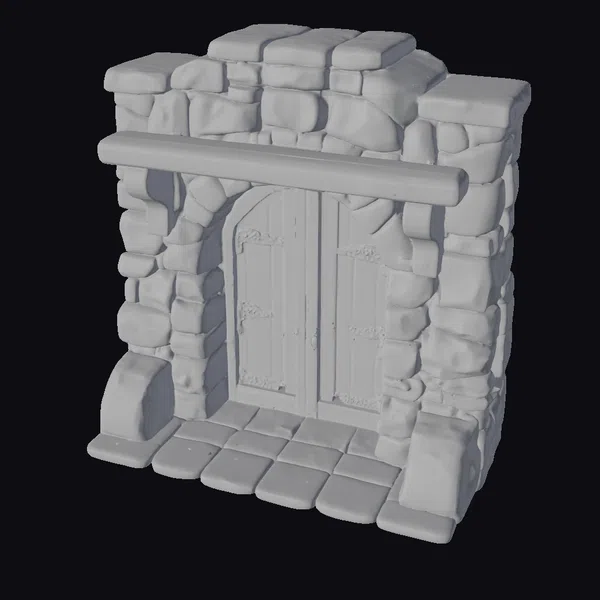 Crafted with precision, this 3D model showcases a stone and wood hearth entrance that exudes a sense of mystique and allure. The wooden door, with its arched top and metal hinges, appears sturdy and inviting. The stone walls, constructed from large, irregularly shaped blocks, provide a sense of solidity and permanence. A wooden mantel stretches across the top of the entrance, adding a touch of warmth and coziness. The model is perfect for use in games, 3D printing, VR/AR experiences, animation, and design projects, offering a unique and captivating element to enhance your creative vision.