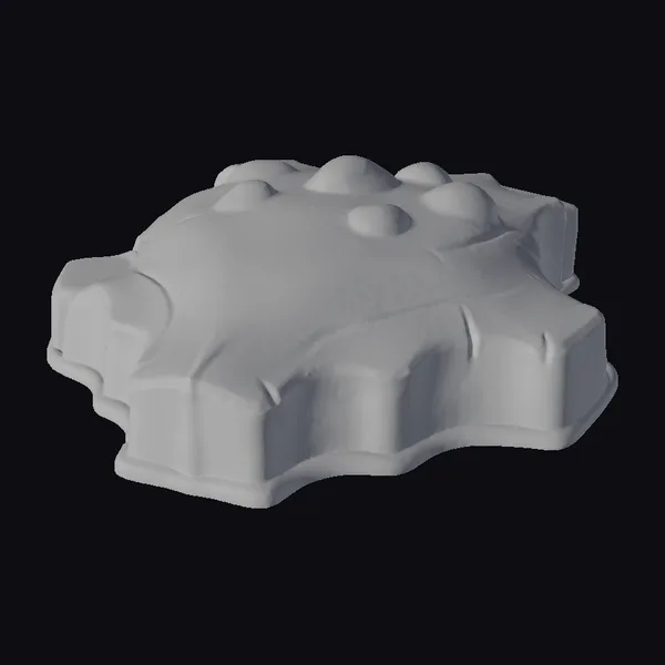 Perched atop a rust-hued base, this imposing stone shield commands attention with its rugged texture and battle-worn appearance. The surface is a tapestry of cracks, scars, and weathered crevices, telling the tale of a storied past. Eight rounded protrusions adorn the shield’s face, arranged in a deliberate pattern that suggests both form and function. As light dances across its surface, the shield seems to shift and writhe, as if infused with a primal energy. This 3D model is perfect for game developers, animators, and designers seeking to inject a dose of medieval grit into their projects. Whether you’re crafting a fantasy RPG, an epic animation sequence, or a detailed architectural rendering, this stone shield is sure to leave a lasting impression.
