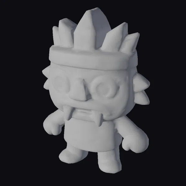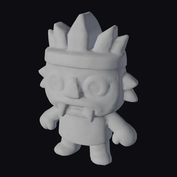 Standing proudly with a robust stance, this stone guardian idol boasts a stylized design with a predominantly tan body accented by green. Its head is adorned with sharp, jagged spikes, adding to its fearsome appearance. The large, round eyes are imposing, while the sharp teeth contribute to its guardian persona. The model showcases detailed textures and a distinctive color scheme, making it a compelling addition to any 3D project. Ideal for use in games, animations, or as a unique decorative piece, this model brings a touch of fantasy and protection to your scene.