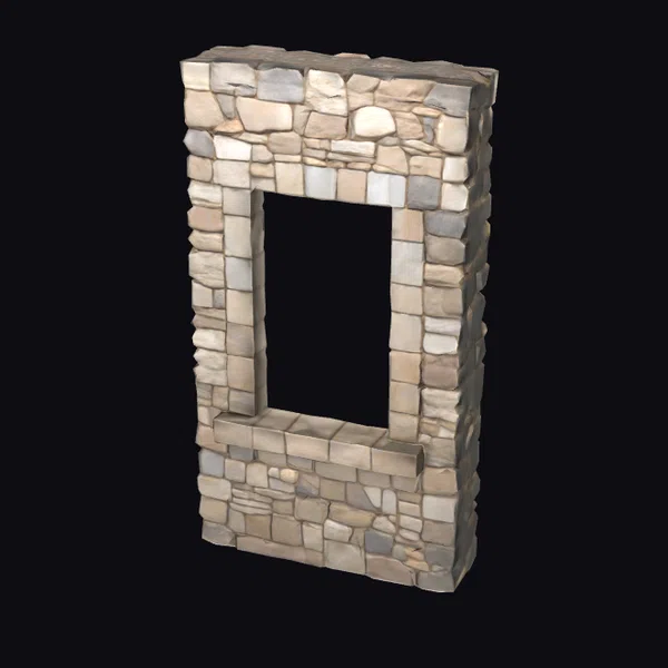 Detailed with precision, this stone wall frame features a mix of rectangular and square stones in varying shades of beige, gray, and brown. The frame’s texture is rough and weathered, with visible mortar lines adding to its authentic look. Standing tall with a sturdy presence, it’s perfect for adding a touch of rustic elegance to games, animations, or architectural visualizations. Designers can use it to create immersive environments, from medieval settings to modern interiors with a vintage twist.