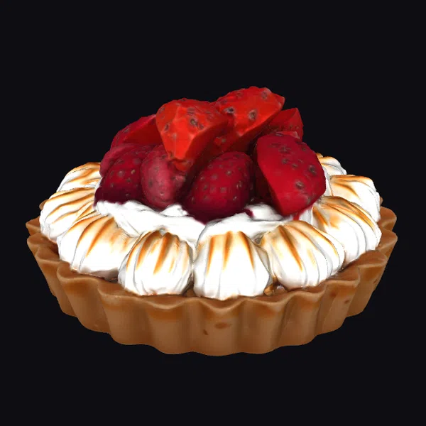Crafted with meticulous attention to detail, this 3D model of a strawberry meringue tart showcases a mouthwatering dessert that’s sure to tantalize the taste buds. The tart’s flaky, golden crust provides a sturdy base for a fluffy layer of toasted meringue, delicately browned to perfection. Atop this sweet foundation, a colorful medley of sliced and whole strawberries adds a pop of freshness and flavor. The model’s intricate textures, from the crimped pastry edges to the seeds on the strawberries, invite the viewer to take a bite. Ideal for use in culinary presentations, advertising, or animation projects, this 3D model is sure to add a touch of gastronomic delight.