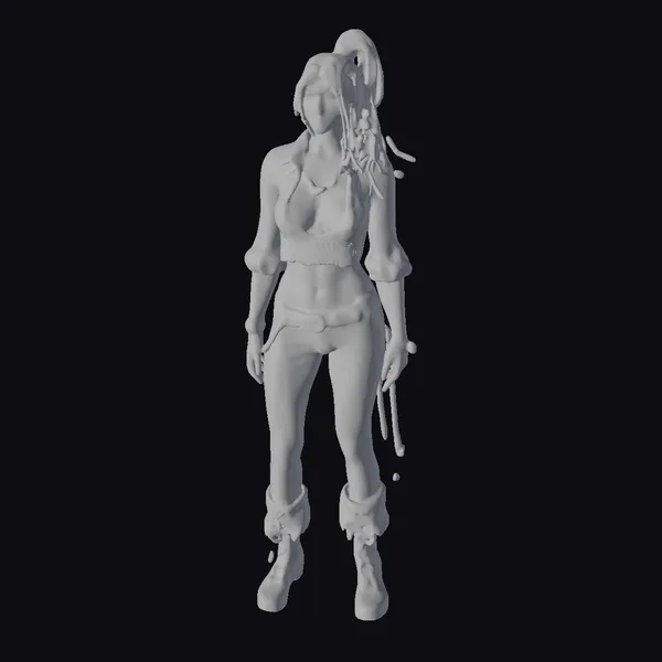 Detailed with precision, this stylized pirate woman boasts a dynamic pose, complete with a high ponytail and tattoos adorning her arms. Her sheer, flowing pirate shirt reveals a hint of her midriff, paired with fitted pants and boots that exude a sense of readiness for adventure. The intricate textures and lighting bring her to life, making her a perfect addition to any project requiring a strong, stylized character. Ideal for use in games, animations, or as a design element, this model is sure to capture the essence of a fearless pirate.