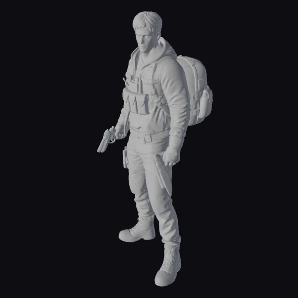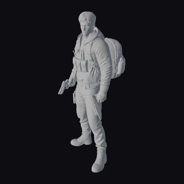 This meticulously crafted 3D model of a survivor presents a compelling figure, poised with a gun in each hand and a look of unyielding resolve. The character’s attire—a combination of a rugged leather jacket, tactical vest, and durable pants—speaks to a life of combat and survival. The addition of a substantial backpack and a holstered sidearm further emphasizes his readiness for extended periods in hostile environments. The model’s realistic style, complete with detailed textures and lifelike proportions, makes it an excellent choice for projects requiring a character that embodies resilience and combat readiness. Ideal for use in video games, virtual reality experiences, animations, and film projects, this model is designed to bring authenticity to any narrative of survival and adventure.
