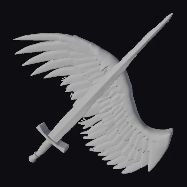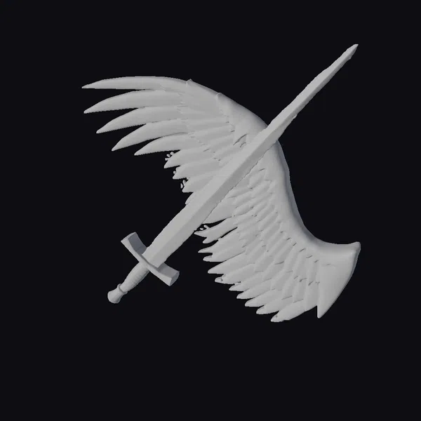 In a stunning display of mythical fusion, a silver sword is paired with a majestic red wing that appears to sprout from its blade. The sword’s hilt and guard are intricately designed with a metallic finish, while the wing boasts detailed feathers gradating from deep red to golden hues at the base. The overall pose suggests dynamic movement, as if the sword is about to take flight. This model is ideal for use in games, 3D printing, VR/AR experiences, animation, and design projects where a heroic or fantastical element is needed. The detailed textures and dramatic pose ensure that it will be a focal point in any scene.