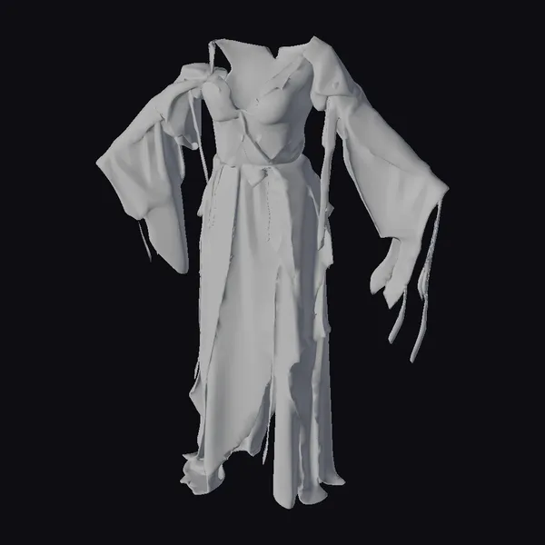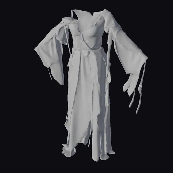 The Model “Tattered Elegant Evening Gown” is also available upon request in many other 3D formats, such as 3MF, BLEND, FBX, OBJ, USDZ and others, making it easy to integrate into your project.