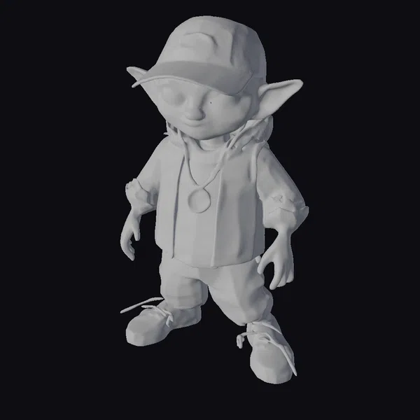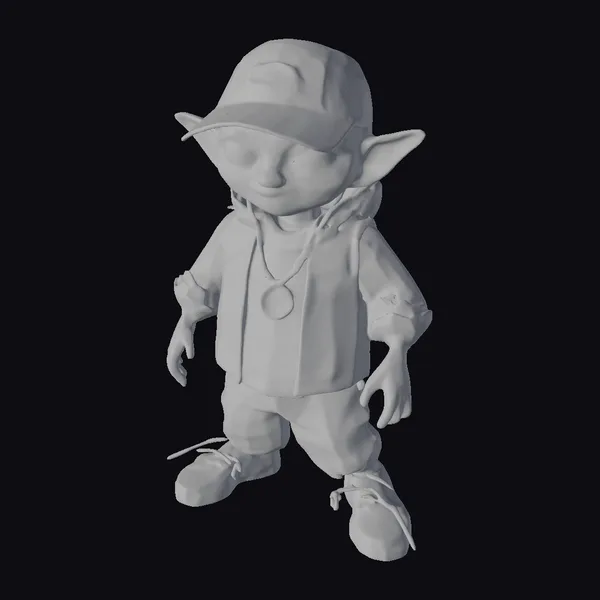 Standing out with its vibrant teal color scheme, this alien character model is dressed in a modern streetwear ensemble, featuring a sleek jacket, matching pants, and stylish sneakers. The outfit is elevated by a trendy hat adorned with a glowing green light and a shiny pendant necklace. With its large, expressive eyes and pointed ears, this character exudes a playful yet fashionable vibe. The model’s stylized features and detailed textures make it perfect for various applications, including games, animation, 3D printing, and virtual reality experiences.