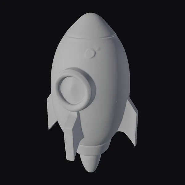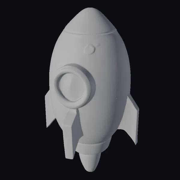Standing tall with its pointed top and rounded body, this teal rocket toy exudes a sense of adventure and fun. The metallic sheen on its surface catches the light, accentuating its childish charm. A circular window on the side and fins at the back add to its detailed appearance. This model is perfect for creative projects, such as animations, games, or 3D printing, where a stylized yet recognizable rocket design is needed. Its playful vibe makes it an excellent choice for kids’ content or educational materials about space.