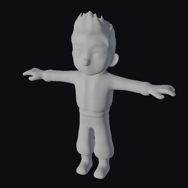 Standing with arms outstretched, this cartoon kid showcases a dynamic pose that captures a sense of excitement and readiness. His tech outfit is meticulously detailed with a red and gray jacket, white sleeves, and matching red and gray shoes, all accented with yellow and red stripes. The model’s brown hair is styled in a spiky fashion, complementing his large, expressive eyes. The overall design is playful, modern, and highly engaging. This 3D model is ideal for use in animations, games, and various digital projects where a youthful character is needed. The model’s high-quality textures and detailed features ensure it will integrate seamlessly into any creative endeavor.