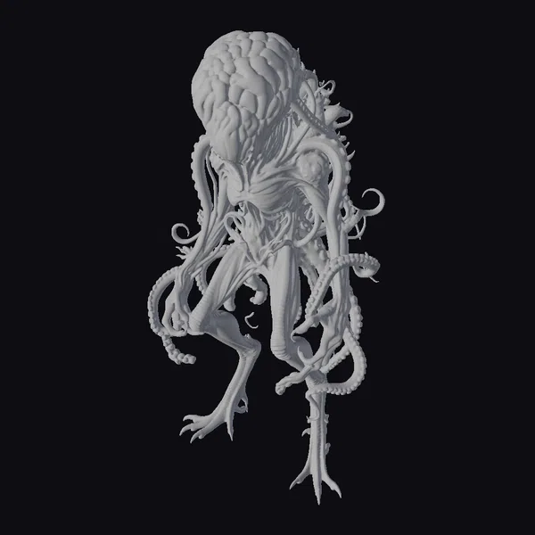 This twisted, tentacled creature appears to be a manifestation of dark fantasy, its bulbous, brain-like head pulsing with an eerie, unnatural energy. The creature’s long, spindly limbs seem to twist and contort in impossible ways, as if they are made of some dark, malevolent rubber. Tendrils of flesh writhe and twist around its body, giving the impression of a creature that is constantly in motion, even in repose. The creature’s coloration shifts between green and pink, like a diseased, rotting flesh. Its very presence seems to darken the air around it, as if it is a void of malevolence drawing all light and life towards it. This 3D model would be perfect for adding a touch of eldritch horror to any dark fantasy or sci-fi project, from games and animations to 3D printing and design.