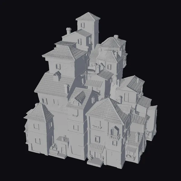 Nestled in a picturesque setting, this terracotta roofed village boasts a collection of white buildings with weathered terracotta roofs, chimneys, and ornate details. The model’s intricate textures and architectural features, such as balconies and archways, transport you to a quaint Italian town. Ideal for use in games, architectural visualizations, or animations, this model brings a touch of rustic charm to any project. The village’s haphazard layout and worn appearance create a sense of authenticity, making it perfect for designers seeking a realistic yet stylized environment.