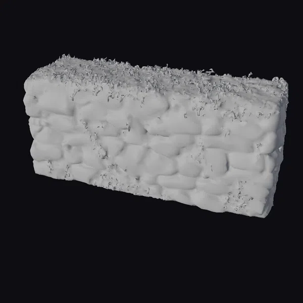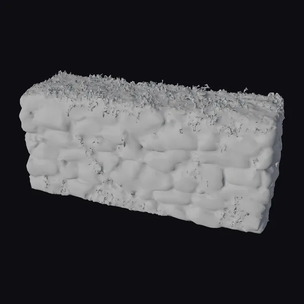 Perched at a slight angle, the stone wall presents a sturdy, imposing presence. The individual stones vary in size and shape, their rough edges and surfaces bearing the scars of time and the elements. Dark shadows between the stones add depth, while the ivy’s bright green hue provides a striking contrast. The top of the wall is a lush carpet of ivy, with tiny leaves and tendrils snaking down the sides, wrapping around stones, and spilling over the edges. This highly detailed model is perfect for game developers, architects, and designers seeking to add realistic, organic elements to their projects. Whether for a game environment, architectural visualization, or animation, this model brings a touch of natural beauty and history to any scene.