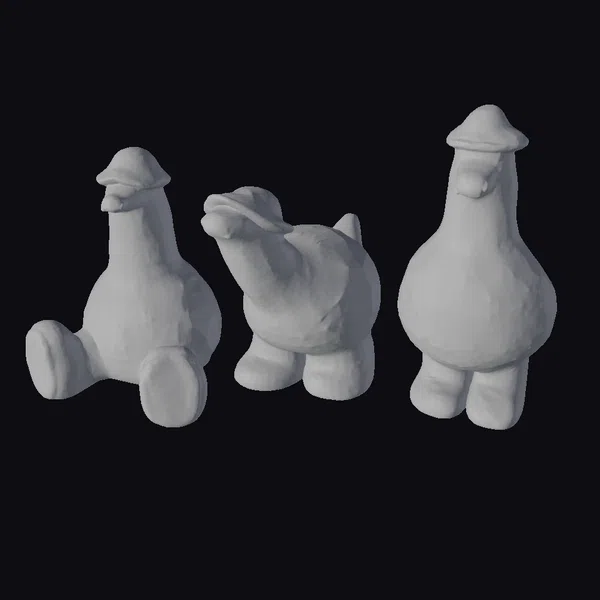 The Model “Three Hatted Duck Figurines” is also available upon request in many other 3D formats, such as 3MF, BLEND, FBX, OBJ, USDZ and others, making it easy to integrate into your project.