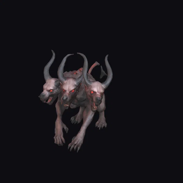 Detailed with precision, this ultra-realistic 3D model of a three-headed hellhound captures the essence of a fearsome mythical creature. Each of its three heads features a snarling mouth with visible teeth, complemented by dark, curved horns that add to its intimidating appearance. The hellhound’s body is a blend of muscular definition and charred, dark skin, complete with sharp claws. Glowing red eyes pierce through the darkness, radiating an otherworldly menace. The model is meticulously crafted with high-quality textures, detailed lighting, and accurate proportions, making it suitable for a variety of applications including game development, 3D printing, virtual reality, animation, and design projects.