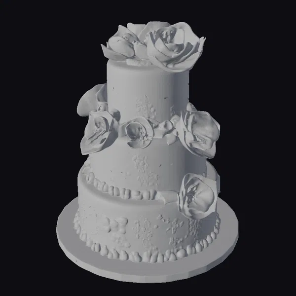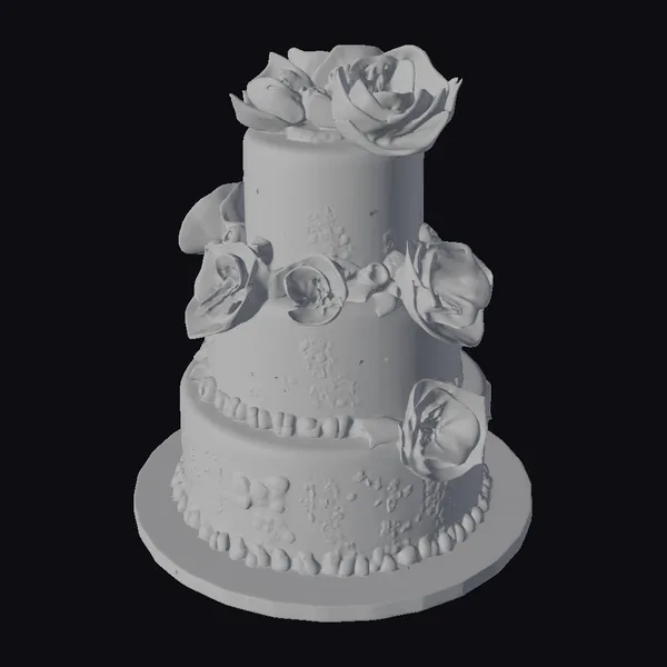 Crafted with meticulous attention to detail, this stunning three-layer cake features a smooth white frosting exterior, accented by delicate pink flowers and green leaves that cascade down its sides. The cake’s base is adorned with a decorative border of small white dots, adding a playful touch. The top of the cake is crowned with a trio of large pink flowers, their petals delicately rendered to capture the softness of real blooms. Ideal for use in games, 3D printing, VR/AR experiences, animation, and design projects, this model brings a touch of realism and charm to any visual narrative.
