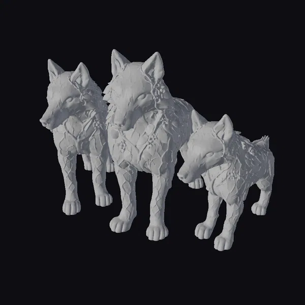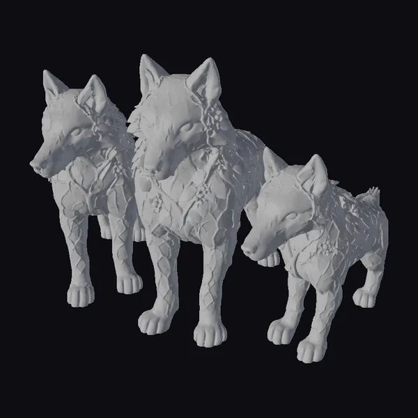 The Model “Three Wolves with Floral Vines” is also available upon request in many other 3D formats, such as 3MF, BLEND, FBX, OBJ, USDZ and others, making it easy to integrate into your project.