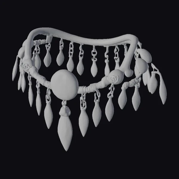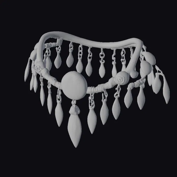 Crafted with precision, this torc features a curved metallic base that comfortably fits around the neck, showcasing a dazzling display of gemstones in shades of blue, gold, and brown. The centerpiece is a large, luminous turquoise stone, surrounded by smaller, teardrop-shaped stones in labradorite, tiger’s eye, and hawk’s eye, which dangle elegantly from the base. The metallic elements exhibit a weathered, aged appearance, enhancing the torc’s ancient allure. Ideal for use in historical or fantasy settings, this 3D model can elevate games, animations, or designs with its unique blend of elegance and antiquity.