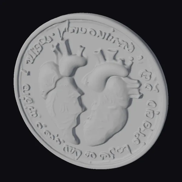 This meticulously crafted coin showcases a heart being torn apart, revealing its intricate inner structures. The heart’s ventricles, atriums, and blood vessels are rendered in vivid red and gold hues, while the dark background and golden text add an air of mystery. The coin’s design invites contemplation on the symbolism of the heart, both literally and metaphorically. Its detailed texture and realistic style make it perfect for use in various projects, such as 3D printing, animation, or architectural visualizations.