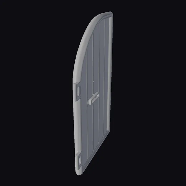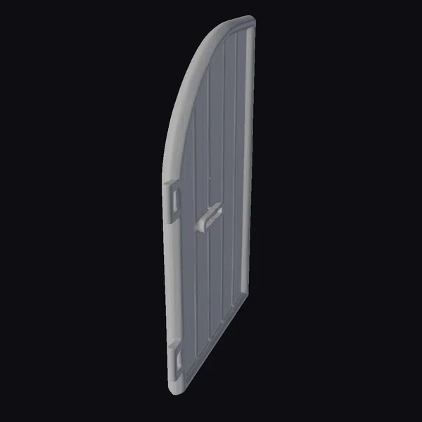 Positioned at a slight angle, the toy door rests on a desk, showcasing its intricately designed surface. The door’s wooden texture, complete with vertical slats and a small handle, exudes a sense of whimsy. Its compact size allows it to blend seamlessly into various settings, from a child’s playroom to a designer’s 3D model portfolio. The door’s presence sparks imagination, suggesting endless possibilities for storytelling and creative play. Whether used in a 3D animation, architectural visualization, or as a prop in a game, this toy door is sure to captivate audiences.