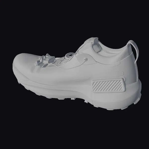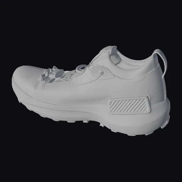 Positioned dynamically with its toe pointing left, this running shoe boasts a predominantly black upper with vibrant yellow accents around the collar and heel. The ‘EQUADYIED’ logo stands out in white on the side, complemented by a white patch on the heel. The shoe’s sole is a blend of white and gray with yellow studs for grip. Crafted with attention to detail, this model showcases textures from the laces to the tread, making it perfect for game developers, animators, and designers looking for realistic footwear assets. Its sporty look and modern design make it versatile for various projects.