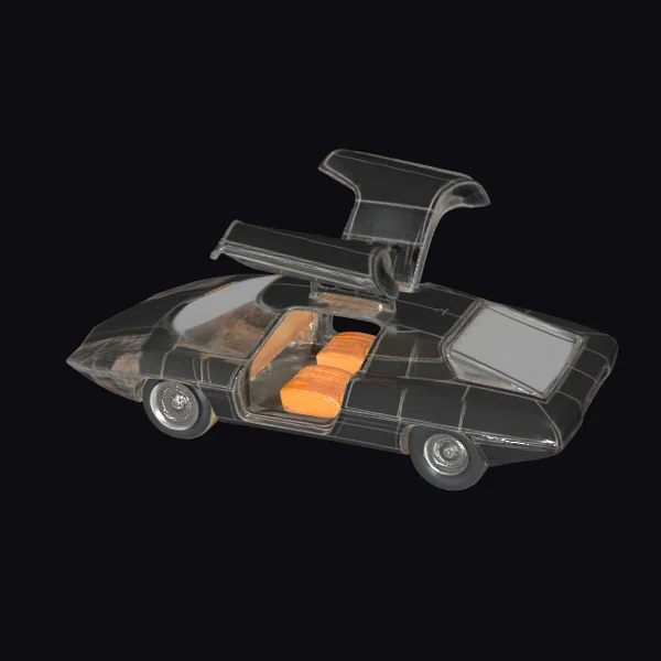 Rendered in meticulous detail, the transparent body of this black sports car showcases its intricate design, from the sleek lines of its exterior to the vibrant orange interior. The gull-wing doors are open, inviting you to take a closer look. This model excels in various applications, including game development, architectural visualizations, film and animation projects, and product design. Its futuristic appeal and detailed craftsmanship make it a versatile asset for creators looking to infuse their work with a touch of sci-fi elegance.