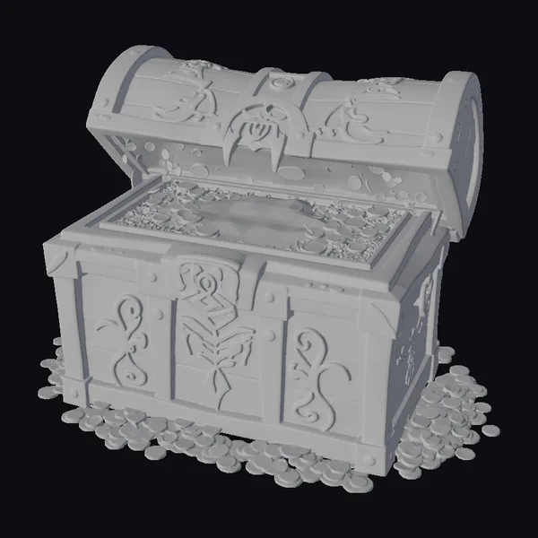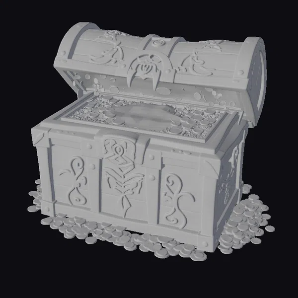 Positioned with its lid ajar, this exquisitely detailed treasure chest reveals a mesmerizing blue glow emanating from within, surrounded by a sea of gold coins that appear to be spilling out onto the surface below. The chest itself boasts a rich, dark wood finish, complemented by ornate carvings and metallic bands that add a touch of luxury and mystique. As the light catches the chest, the textures of the wood and metal seem to come alive, inviting the viewer to reach out and claim the treasure within. Whether you’re a game developer, animator, or simply a fan of fantasy, this stunning model is sure to add a touch of magic to your project. Perfect for use in games, animations, or 3D printing, this treasure chest is a versatile asset that can help bring your creative vision to life.