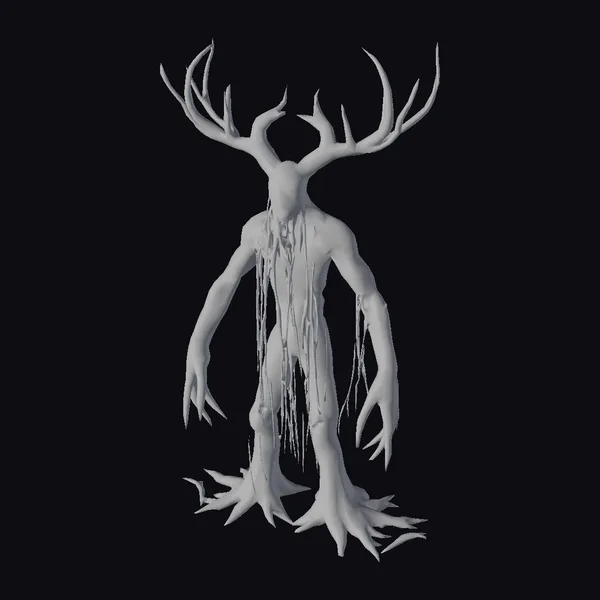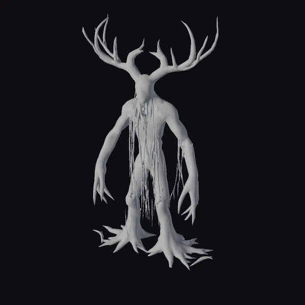 Standing tall with a commanding presence, this tree-like humanoid creature is meticulously detailed with textures that mimic the rough, organic look of tree bark and moss. Its elongated limbs resemble branches, complete with visible roots hanging like hair down its back and chest. The creature’s face is pale and almost gaunt, topped with a pair of impressive antlers that add to its mystical aura. The model is crafted with precision, showcasing intricate details such as the gnarled texture of its skin and the way light catches on its branch-like appendages. Ideal for use in fantasy settings, games, animations, or as a unique decorative piece, this model brings a touch of the mystical forest to any project.