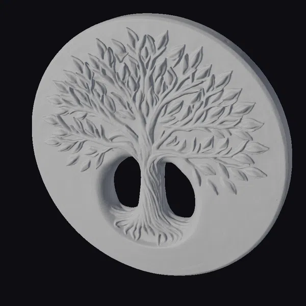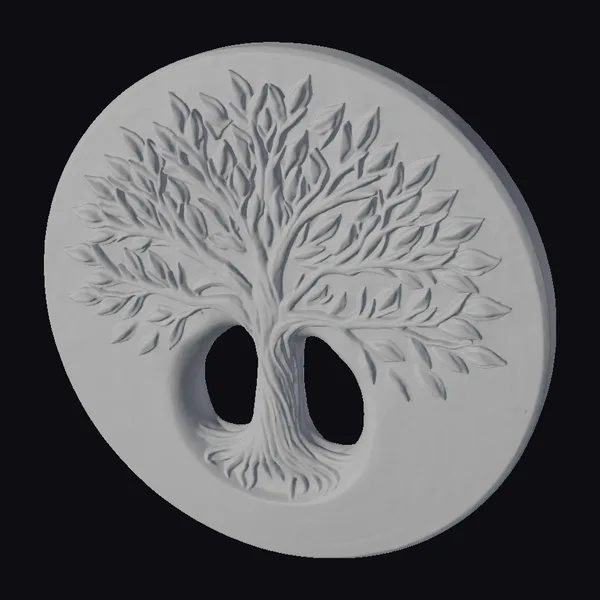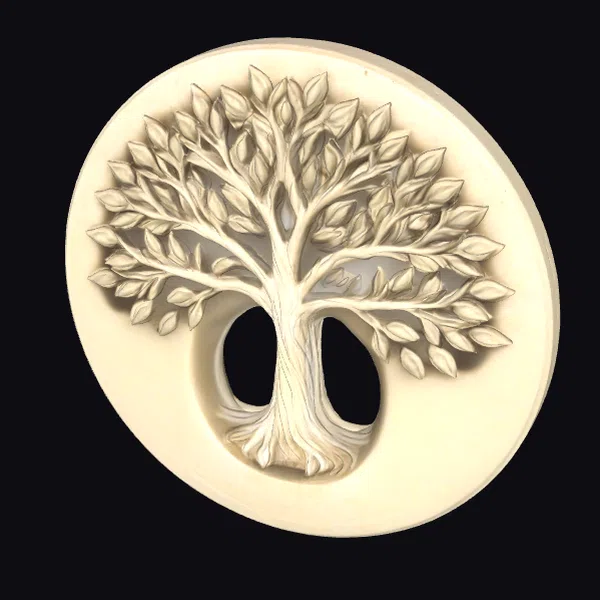 In a stunning display of artistry, the tree of life takes center stage on this exquisite golden plate. The tree’s trunk, adorned with delicate roots, gives rise to sprawling branches that curve and twist, their leaves reaching towards the edge of the plate. The circular surface, with its smooth golden finish, provides a striking backdrop for the carved tree design. As light dances across the plate, the textured leaves and trunk seem to come alive, imbuing the scene with a sense of serenity and wonder. This captivating model is perfect for use in various applications, including games, 3D printing, virtual reality, animation, and design projects, where a touch of elegance and symbolism is desired.
