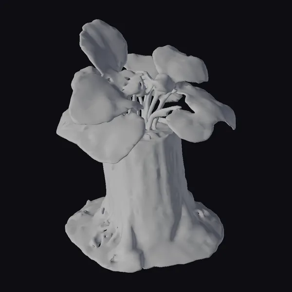 This detailed tree stump planter model features a robust, mossy base with a texture that mimics the natural roughness of tree bark. The plant itself boasts large, green leaves that are intricately detailed, giving the impression of fresh growth. The combination of the sturdy stump and the lush plant creates a visually appealing contrast. Ideal for use in games, 3D environments, animations, or architectural visualizations, this model brings a natural, serene element to any scene. The high level of detail in both the plant and the stump makes it suitable for close-up shots or as a background element.