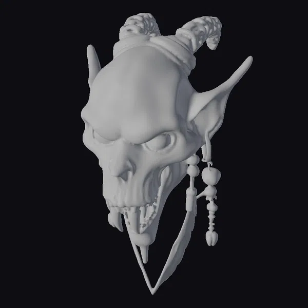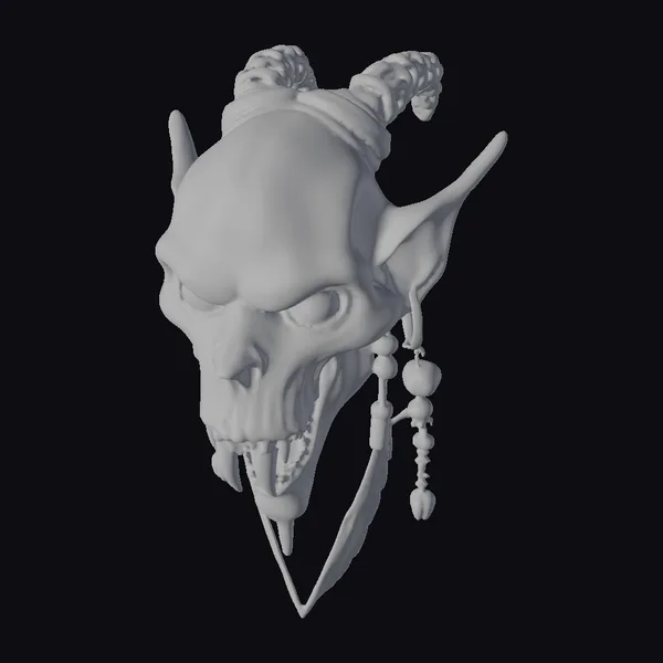 Gaze upon the intricate details of this tribal goblin skull earring, posed menacingly with a snarling expression and sharp teeth. The earring’s surface boasts textures that mimic twisted bone, complemented by the dark, earthy tones of tarnished bronze. Adorned with an assortment of beads and feathers, it captures a blend of shamanic mystique and gothic flair. Ideal for adding an edge to digital art, games, or 3D printing projects, this model promises to be a focal point. Its unique design makes it perfect for animation, VR/AR experiences, and graphic design.
