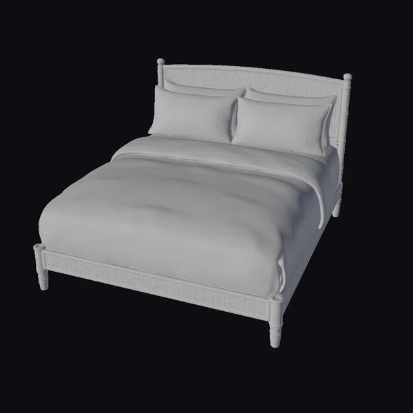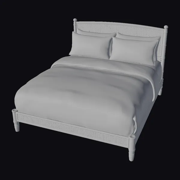 Crafted with meticulous attention to detail, this tropical bed model showcases a sturdy wooden frame with a natural finish, complemented by a comforter and pillows featuring a stunning palm tree design. The comforter’s white background is accentuated by a vibrant green palm tree pattern, adding a pop of color to any room. The bed’s headboard features a woven rattan or wicker design, adding a touch of organic elegance. This model is perfect for interior designers, architects, and 3D artists looking to create immersive and inviting environments. Whether used in architectural visualizations, interior design projects, or 3D animations, this tropical bed model is sure to transport viewers to a serene and idyllic setting.