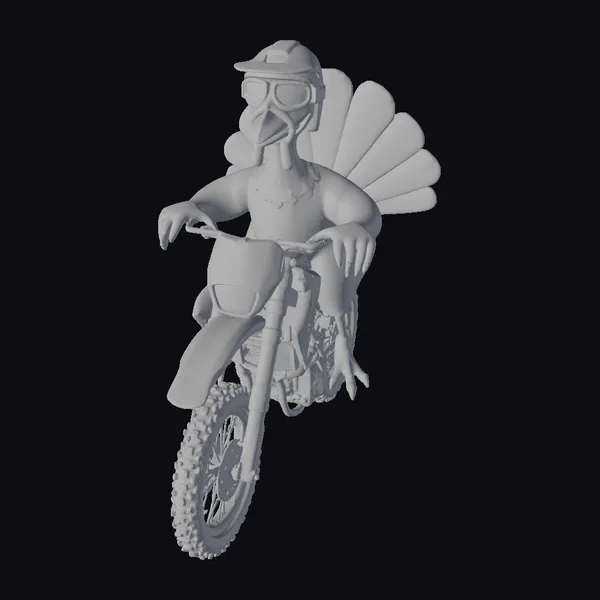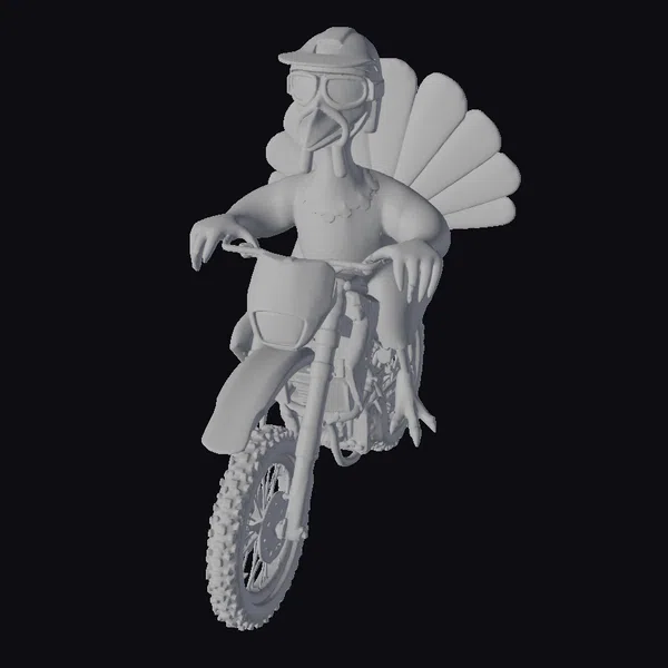 The Model “Turbo Turkey on Motorcycle” is also available upon request in many other 3D formats, such as 3MF, BLEND, FBX, OBJ, USDZ and others, making it easy to integrate into your project.