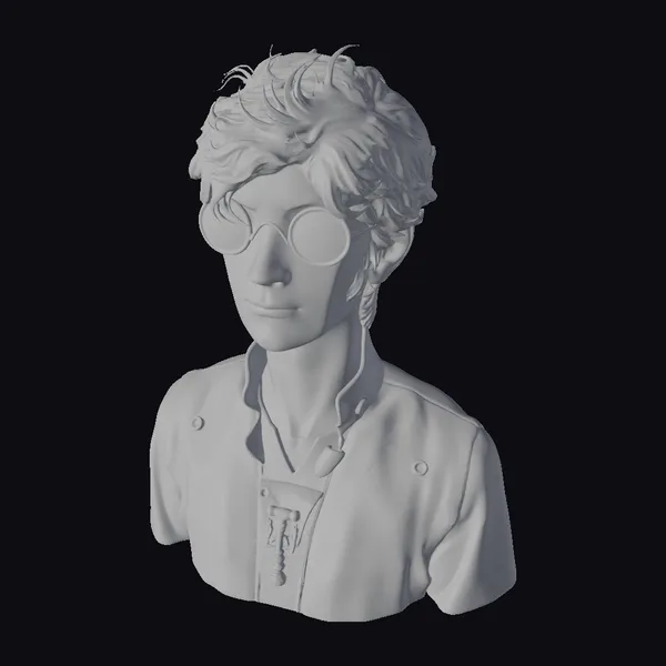 This stunning 3D bust showcases a male rock musician with a head-turning turquoise hairstyle and a bold fashion statement. The teal jacket, embellished with ornate gold designs, is paired with a bright yellow shirt underneath, adding a pop of color to the overall look. The musician’s round sunglasses, also in gold and teal, complete the stylish ensemble. With its unique blend of colors and textures, this model is perfect for use in games, 3D printing, VR/AR experiences, animation, and design projects. The model’s detailed features, from the messy blue hair to the intricate gold accents, make it a standout addition to any creative project.
