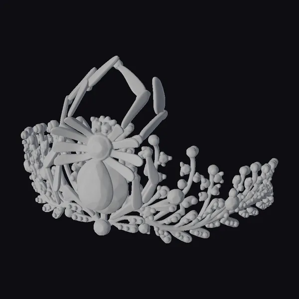 Perched regally on a bed of twisted, vine-like metalwork, a stunning spider brooch takes center stage on this opulent crown. The spider’s body, a deep, rich purple, glimmers with an inner light, as if infused with an otherworldly essence. Its eight legs stretch upwards, as if poised to spring into action. The crown itself is a masterwork of jewelry design, with hundreds of small, dark jewels set into delicate filigree. The overall effect is one of dark, gothic luxury, perfect for adding a touch of drama and whimsy to any outfit. Ideal for use in games, animation, or 3D printing, this model is sure to captivate audiences with its intricate details and eerie beauty.
