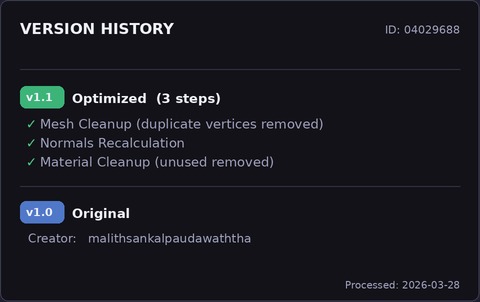 Further optimized in this latest version 1.1, this Very High Poly Premium 3D model is available immediately in GLB and STL file formats and can be purchased with licenses for both personal and commercial use.
