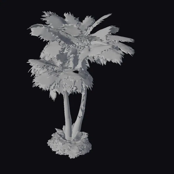 Standing tall with two sturdy trunks, this palm tree model boasts an abundance of lush, green leaves that appear to dance in the wind. The trunks, wrapped in textured bark, rise from a base of rough, earthy soil, adding depth and realism to the model. The leaves themselves are a marvel of detail, with serrated edges and a natural sheen that catches the light. Perfect for bringing a slice of the tropics to your 3D environments, this model is ideal for use in games, architectural visualizations, animations, and more. Its realistic appearance and detailed textures make it a versatile asset for any project.