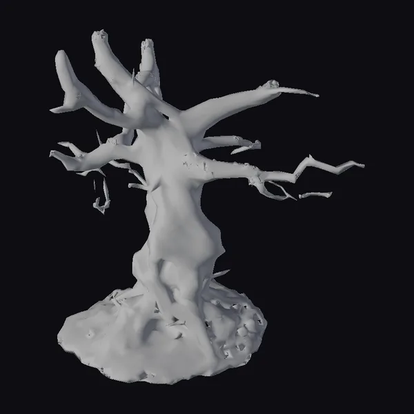 Perched atop a tangle of roots and decaying vegetation, the twisted apocalyptic tree exudes an aura of desolation. The trunk and branches, rendered in a dark gray hue, are etched with deep cracks and fissures, suggesting a long history of suffering. Glowing veins of orange and red pulse faintly beneath the surface, imbuing the tree with an otherworldly energy. As the branches twist and turn, they appear to grasp for the sky like skeletal fingers. This 3D model is perfect for adding a touch of dark fantasy to games, animations, or virtual reality experiences. Its unique blend of eerie glow and twisted, organic form makes it an ideal prop for sci-fi and fantasy projects.