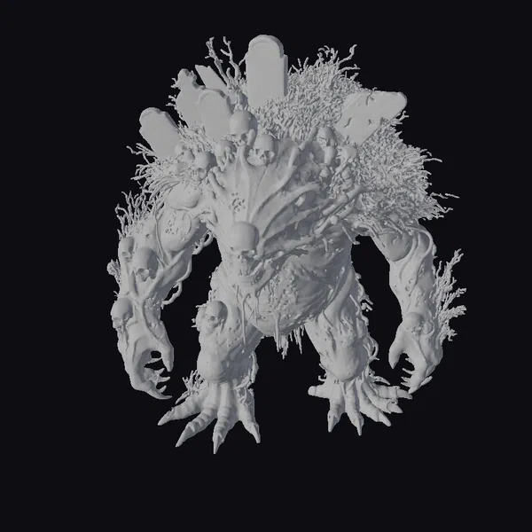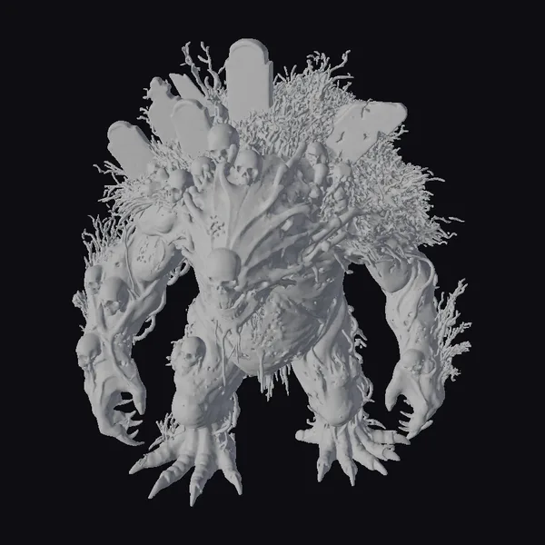 Standing tall with an eerie presence, the twisted graveyard guardian is a sight to behold. Its body is a mass of twisted, organic matter with glowing green spots scattered across its surface. Moss and dark vegetation cover its form, with skeletal remains protruding from its shoulders and head. The guardian’s face is a twisted visage of bones and glowing green eyes, giving it an otherworldly appearance. Its arms end in sharp, claw-like fingers, perfect for grasping and tearing. This model is perfect for adding a touch of dark fantasy to your projects, whether it’s for games, animation, or 3D printing. The level of detail and realism makes it suitable for professional use in various creative fields.