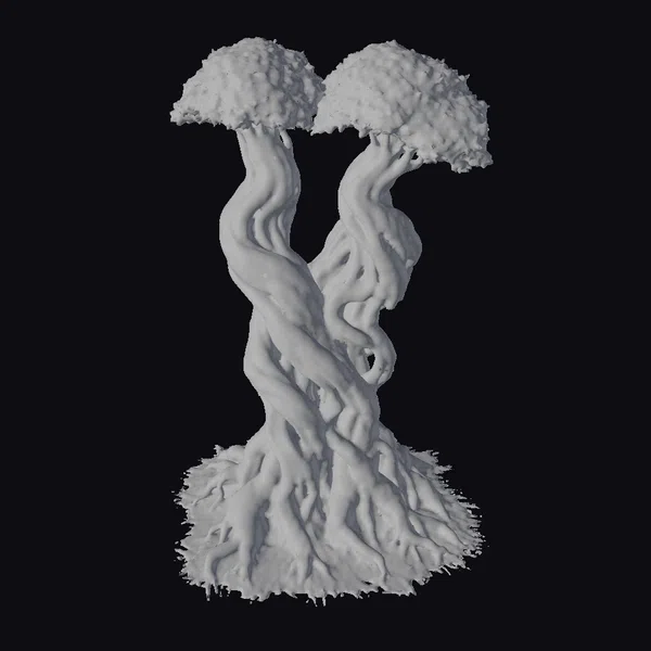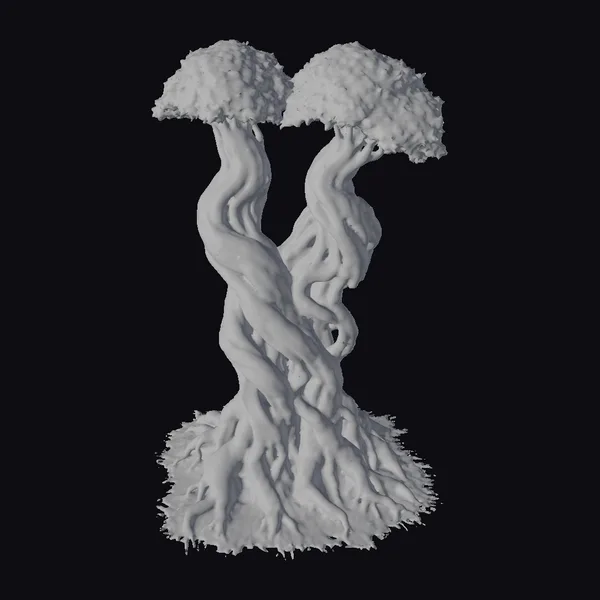 Perched on a bed of lush, grassy undergrowth, this twisted tree sculpture features two vibrant green canopies that appear to be bursting with life. The trunk, a complex weave of gnarled roots and branches, twists and turns in impossible ways, creating a sense of dynamic movement. The mossy texture and earthy tones bring a sense of realism to this fantastical piece. Ideal for use in games, animation, or 3D printing, this model can add a touch of whimsy and wonder to any project. Its intricate details and organic shape make it perfect for designers and artists looking to create immersive, fantastical environments.