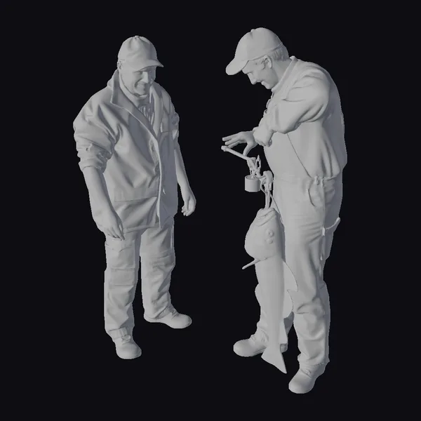 Rendered in exquisite detail, these two fishermen stand proudly, one holding a substantial fish by its gills, the other looking on with a mix of admiration and envy. The model captures the essence of a moment filled with the thrill of the catch and the bond between friends. The textures of their clothing, from the rugged leather jackets to the casual hats, are meticulously crafted, inviting the viewer into a scene that’s both serene and exhilarating. This 3D model is perfect for projects requiring a realistic depiction of outdoor activities, character animation, or simply to add a touch of authenticity to your scenes.