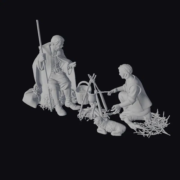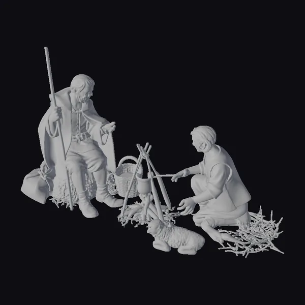 The Model “Two Men by Campfire” is also available upon request in many other 3D formats, such as 3MF, BLEND, FBX, OBJ, USDZ and others, making it easy to integrate into your project.