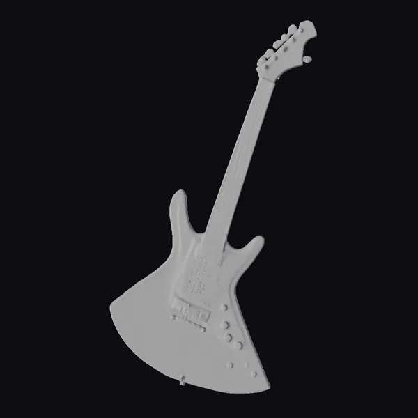 Detailed with precision, this V-shaped electric guitar features a sunburst finish that transitions smoothly from deep orange at the edges to golden hues towards the center. The flat black body and headstock offer a sophisticated contrast, while the six strings and various knobs and switches add to its realistic appearance. The guitar’s unique shape and detailed design make it an excellent choice for 3D modeling, animation, and game development projects. Its applications extend to architectural visualization, product design, and even virtual reality experiences, offering a versatile tool for creatives.
