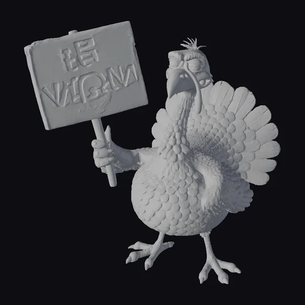 The Model “Vegan Turkey Cartoon Character” is also available upon request in many other 3D formats, such as 3MF, BLEND, FBX, OBJ, USDZ and others, making it easy to integrate into your project.