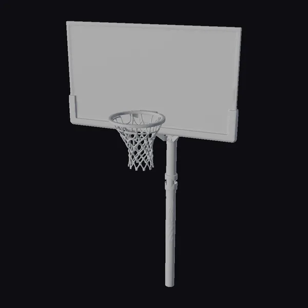 Detailed with precision, the basketball hoop features a sturdy black frame that supports a blue backboard with white trim and purple logos at each corner. The hoop itself is a bright red with a white net that hangs elegantly from its rim. Positioned on a black pole with yellow accents, the entire setup is angled slightly, suggesting dynamic movement. The model’s realistic proportions and textures make it ideal for use in architectural visualizations, game environments, or 3D animations where urban recreation scenes are needed. Its high level of detail, from the net’s weave to the backboard’s logos, ensures it will add a realistic touch to any project.
