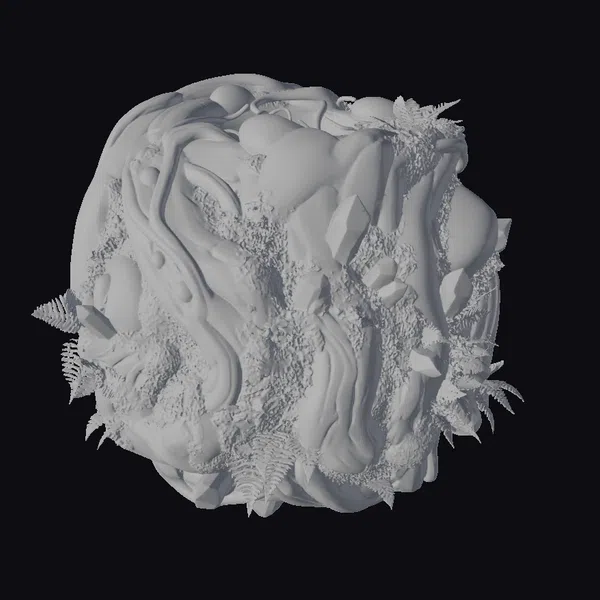 Behold the mesmerizing Verdant Core, a 3D marvel that transports you to an enchanted realm. This captivating model showcases a densely packed, spherical arrangement of twisted tree roots, smooth rocks, and lush green moss, punctuated by vibrant blue flowers and radiant crystals in shades of amber and emerald. The intricate textures and organic shapes evoke a sense of ancient, mystical power. Ideal for use in games, 3D printing, VR/AR experiences, animation, and design projects seeking a touch of fantasy and wonder.