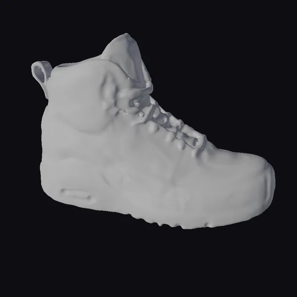 Get a closer look at this stunning blue sneaker, posed dynamically to showcase its intricate details. The upper part of the shoe features a beautiful blend of blue and white textures, accented with orange and red details. The laces are meticulously designed to add a touch of realism. The sneaker’s surface is shiny and reflective, catching the light and highlighting its stylized design. The sole is white with a wavy pattern, adding to the shoe’s sporty appeal. This model is perfect for use in games, 3D printing, VR/AR experiences, animation, and design projects.