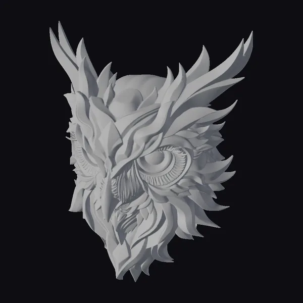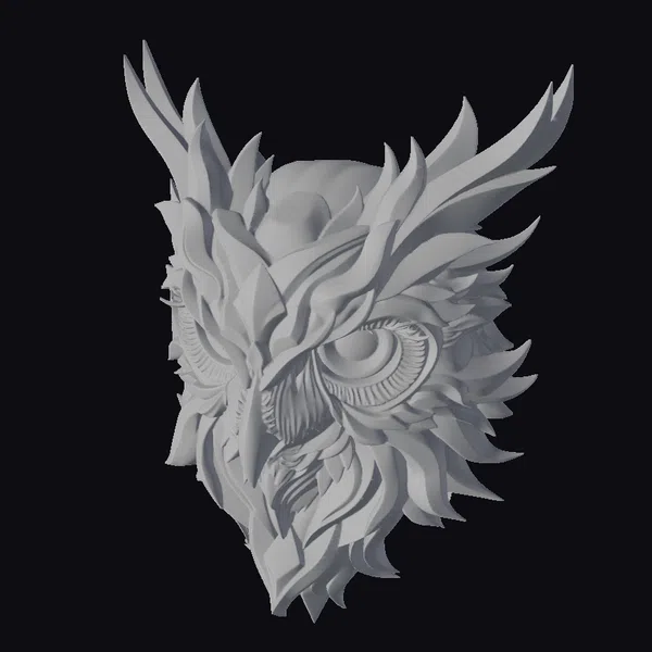 This stylized owl head model boasts an intricate design, with feathers that swirl and curve in a mesmerizing display of color and texture. The owl’s eye is a striking focal point, shining with a warm, golden light that seems to draw the viewer in. The model’s abstract, ornate style makes it perfect for use in a variety of creative projects, from game development and animation to architectural visualization and design. Its unique blend of realism and fantasy elements could add a touch of magic to any scene or environment.